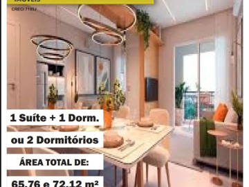 OPORTUNIDADE, apartamentos com 2 quartos com 65,76m² e também apartamentos com 1 suite +1 quarto com 72,12m².